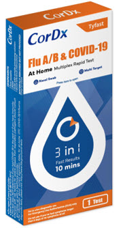 The 3-in-1 self-test is a lateral flow immunoassay device intended for the qualitative detection and differentiation of nucleocapsid protein antigens from influenza type A and type B as well as SARS-CoV-2. A sample is collected with one shallow nasal swab from those suspected of respiratory viral infection. This new at-home diagnostic solution sets the standard for detecting and distinguishing between Flu A, Flu B, and COVID-19 in just 10 minutes.