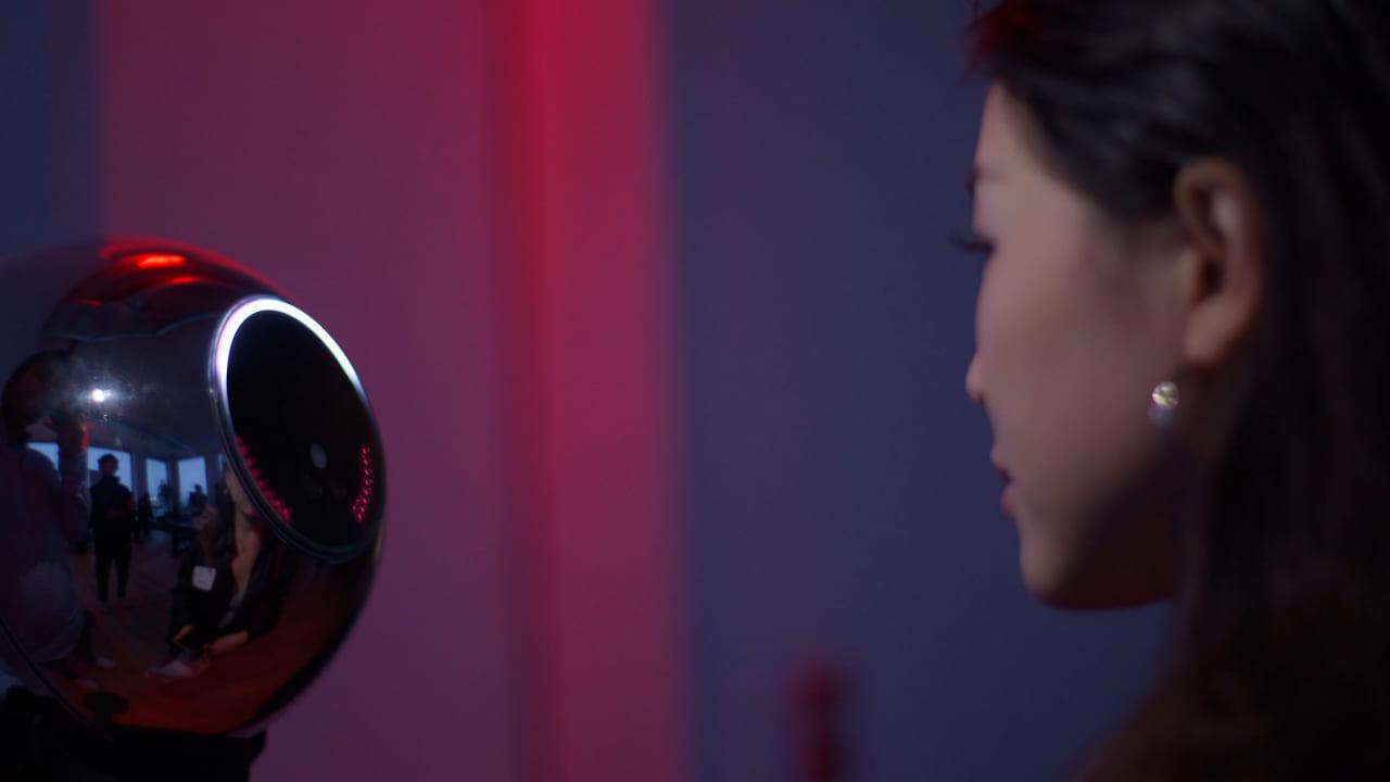 A woman looking into an Orb (World) (Kurt “CyberGuy” Knutsson)