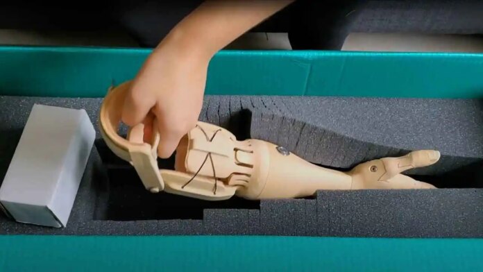 TrueLimb is pictured in the box in which it was delivered. (Unlimited Tomorrow)