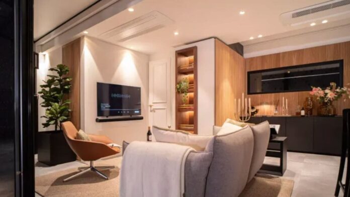 Buyers can choose to line each lengthy sidewall with floor-to-ceiling automotive-grade glass, with or without optional electric sliding doors to open the space up whenever desired. With these options, the Expandable Mansion aims to have occupants forget they’re in a trailer and not a luxury apartment.