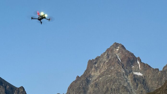 Drone in flight near the peak of Monviso in Italy’s Cottian Alps during a rescue mission. (CNSAS)