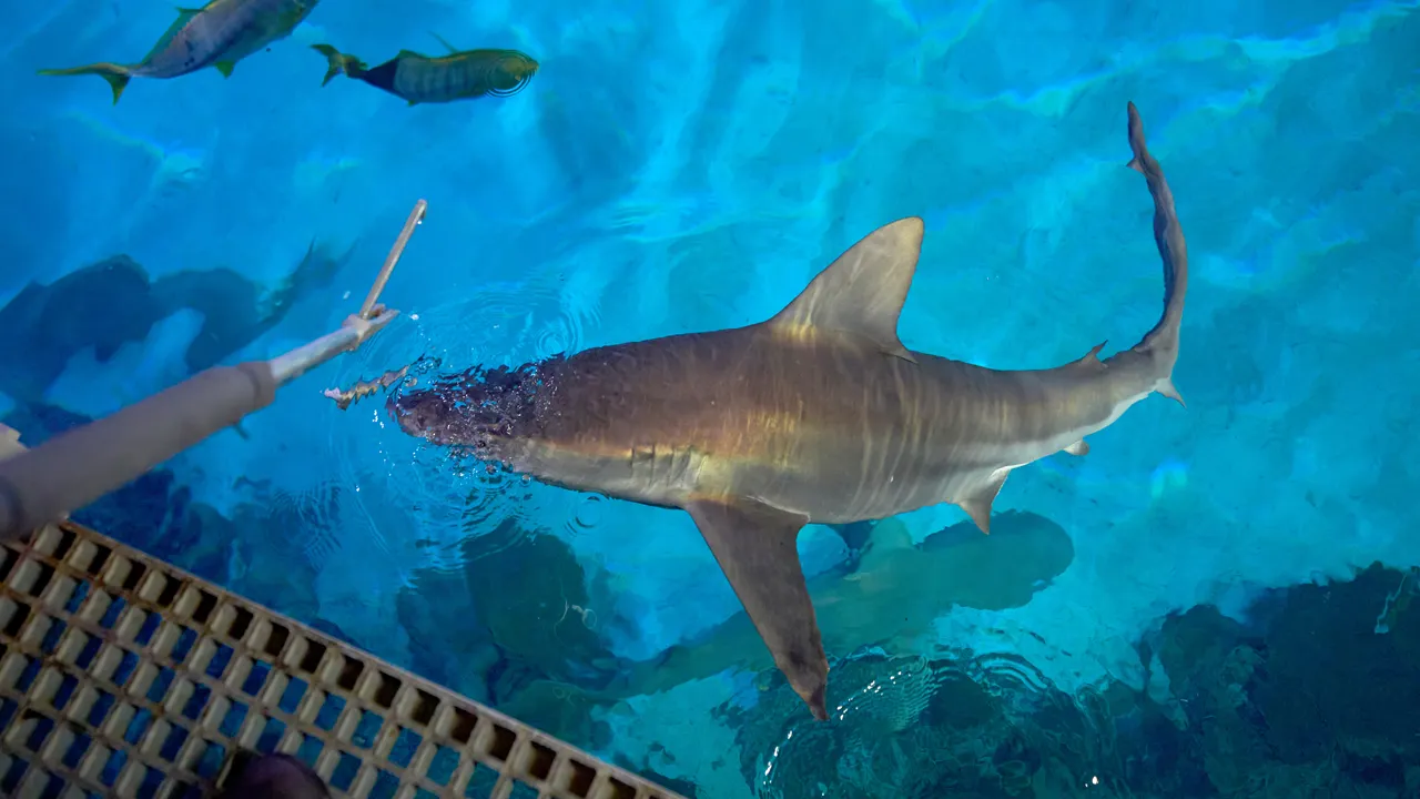 The casino’s lead aquarist, Becky O’Brien, told the AP she feeds 15 species of sharks three times a week.